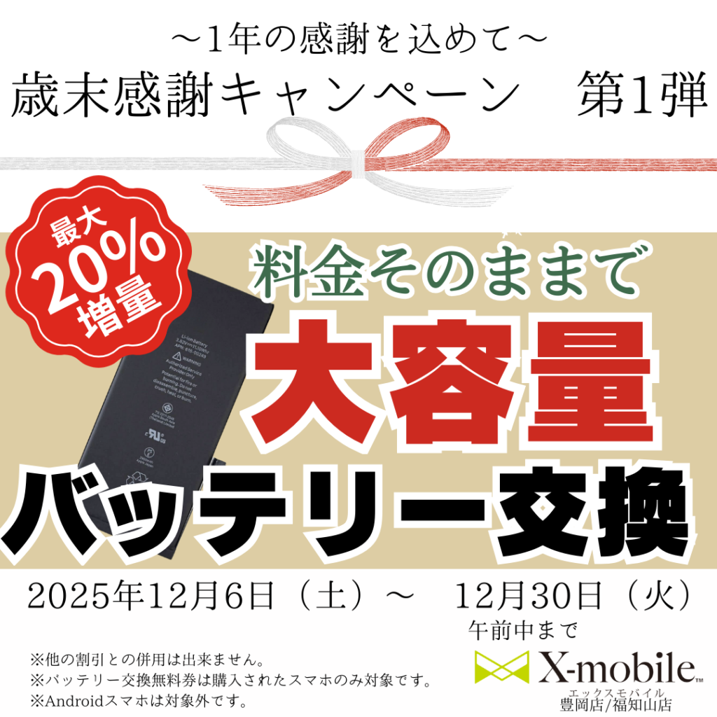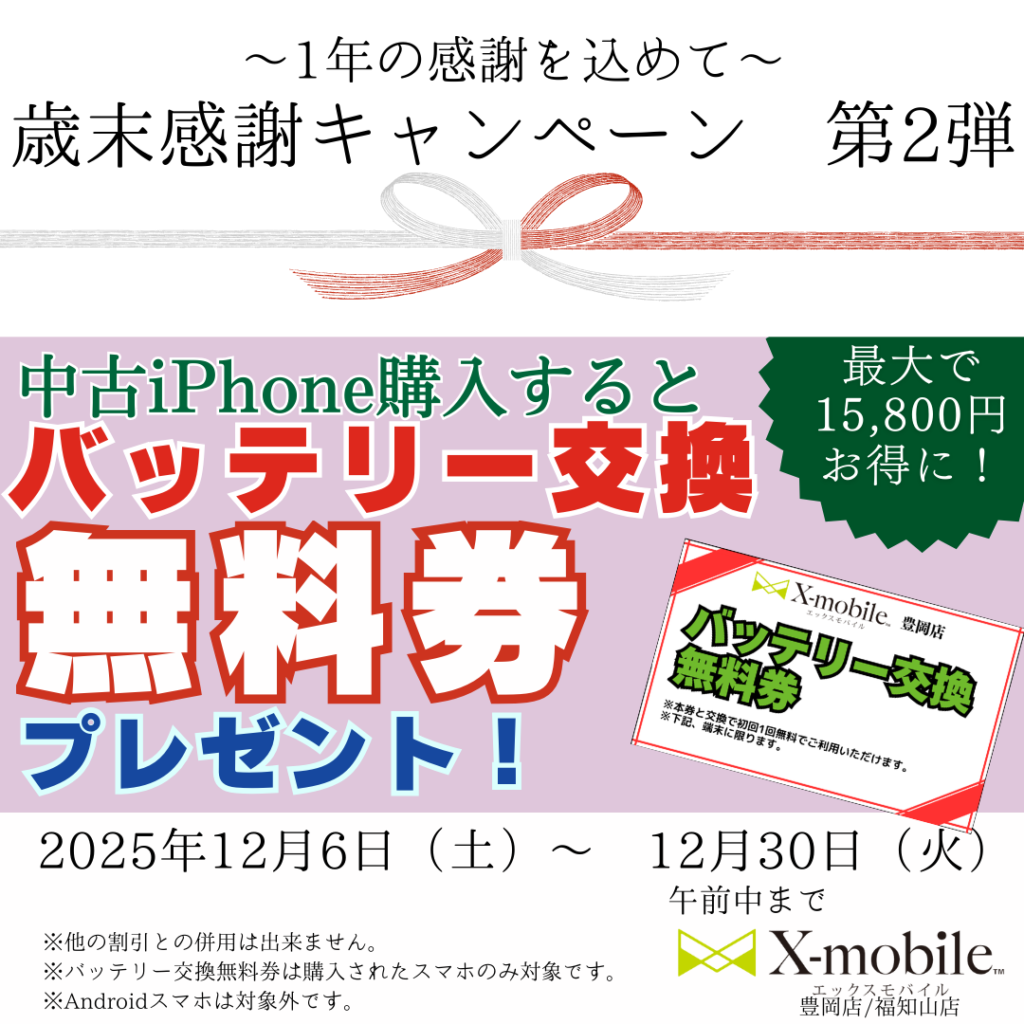 歳末キャンペーン!!!~一年の感謝を込めて~ 2025年12月18日 最終更新日時 : 2025年12月18日 xmobile-fukuchiyama 一年の感謝を込めて、歳末キャンペーンを開催中!! お問い合わせだけでも来店ください!!