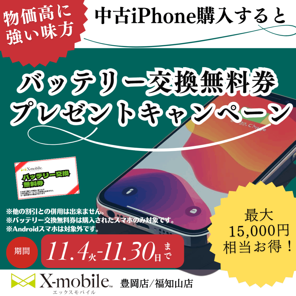 📱✨ 中古iPhone購入でバッテリー交換無料券プレゼントキャンペーン!✨📱